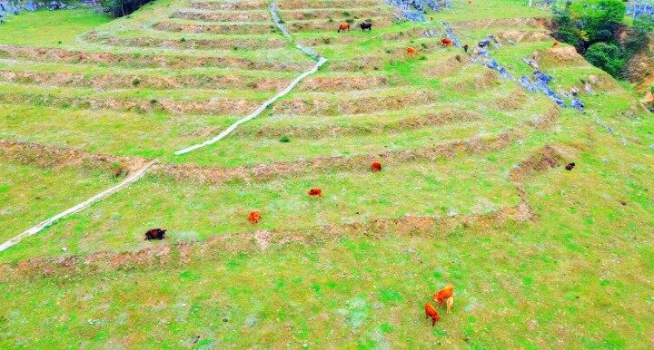 青青的牧场,蓝蓝的天,牛羊撒落天地间。盛夏时节,走进沿河土家族自治县思渠镇,眺望远处,是绿毯般的草地,闲散的牛群正在享受阳光下的惬意,“哞哞哞……”声此起彼伏,唱响山间致富增收乐曲。