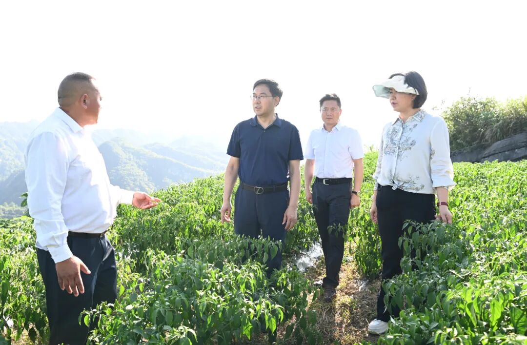 图为李作勋在甘龙镇浑泉村辣椒种植示范点了解种植品种、种植规模、群众增收等情况。