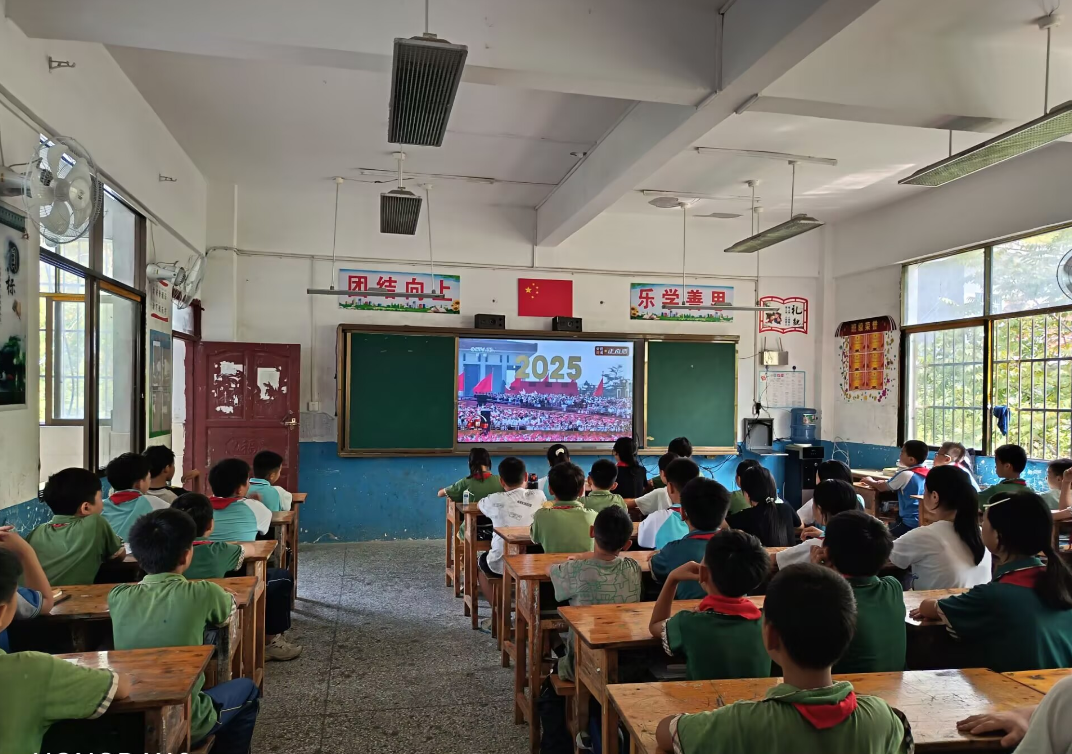 “组织学生集中观看阅兵式,旨在让‘强国复兴’的信念在学生心中扎根,让他们去践行‘请党放心·强国有我’的铮铮誓言,为中华之崛起而努力读书。”县沿河第六完全小学少先大队辅导员赵凤琴说。