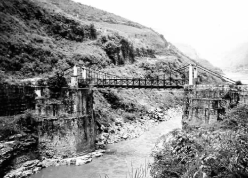 抗战时期修建于盘江钢架桥下游的钢索备用吊桥