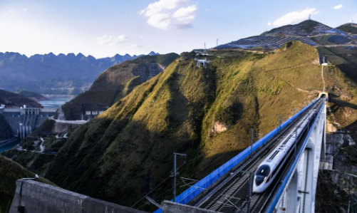 北盘江沪昆高铁特大桥,位于光照电站下游1.2公里处,是沪昆高铁贵州段的控制性工程,桥长721.5米,单跨495米,高219米,采用拱式结构。该桥具有工程规模大、管理要求高、技术标准高、结构形式新颖复杂、施工控制难度大等特点,项目部于2010年进场。2014年1月,随着最后一根螺栓的对位和锁定完毕,由中国中铁港航局承建的世界最大跨度的混凝土拱桥——沪昆客专北盘江特大桥顺利合龙,为沪昆高铁全线如期建成通车奠定了基础。