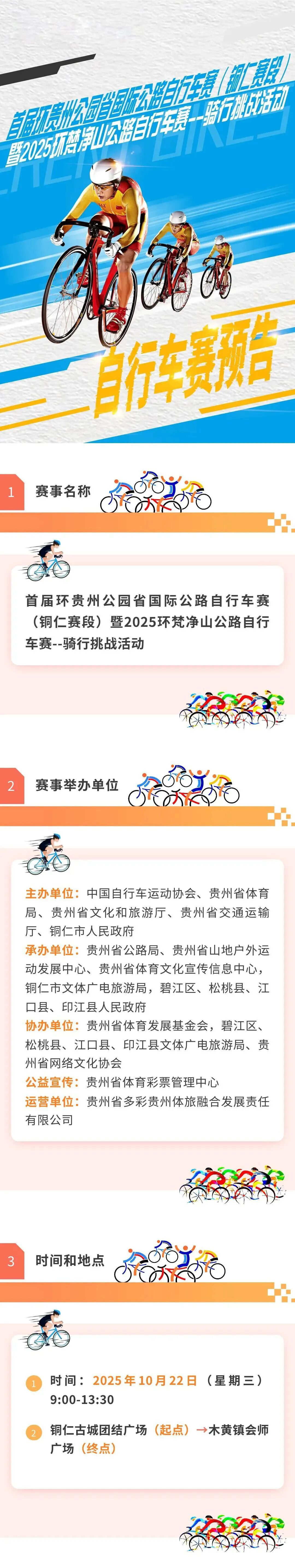 各位街坊明日举行的自行车赛赛事线路将涉及碧江、江口、印江、松桃四个区县为保障赛事活动期间道路交通安全有序届时将对部分道路采取分时分段临时交通管制请提前做好出行规划↓↓↓