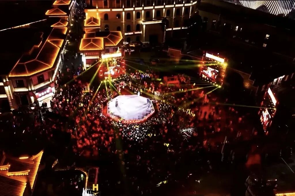 中南门历史文化旅游区推出的“中南门之夜·燃情跨年year!”活动,以文庙前广场为主舞台,联动六大特色分舞台,创新融合“文化+旅游+科技”,将非遗展演、梦幻光影秀、民俗互动与美食市集无缝衔接,传统非遗的韵味与现代潮流的活力在此碰撞交织,让千年古城焕发别样风华。跨年当晚参与活动体验者达10万+人次,全网涉中南门跨年夜相关信息达5000余条,互动声量324.66万,全网曝光量上亿次。