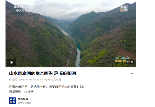 2025年5月18日,中央广播电视总台—中文国际频道刊播《贵州:摄影师拍到黑叶猴觅食珍贵画面》视频报道。