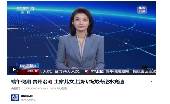 2025年6月3日,中央广播电视总台—13频道刊播《端午假期 贵州沿河 土家儿女上演传统龙舟逆水竞速》视频报道。