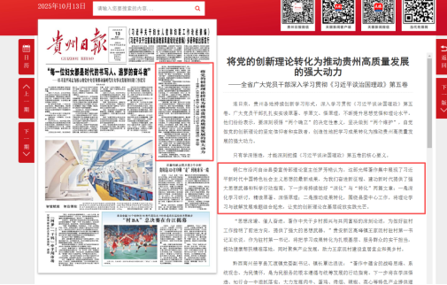 2025年10月13日,贵州日报头版刊发《将党的创新理论转化为推动贵州高质量发展的强大动力——全省广大党员干部深入学习贯彻《习近平谈治国理政》第五卷》。