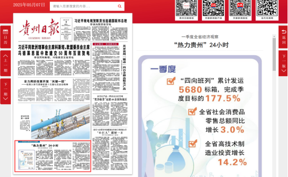 2025年5月7日,贵州日报头版刊发《一季度全省经济观察“热力贵州”24小时》。