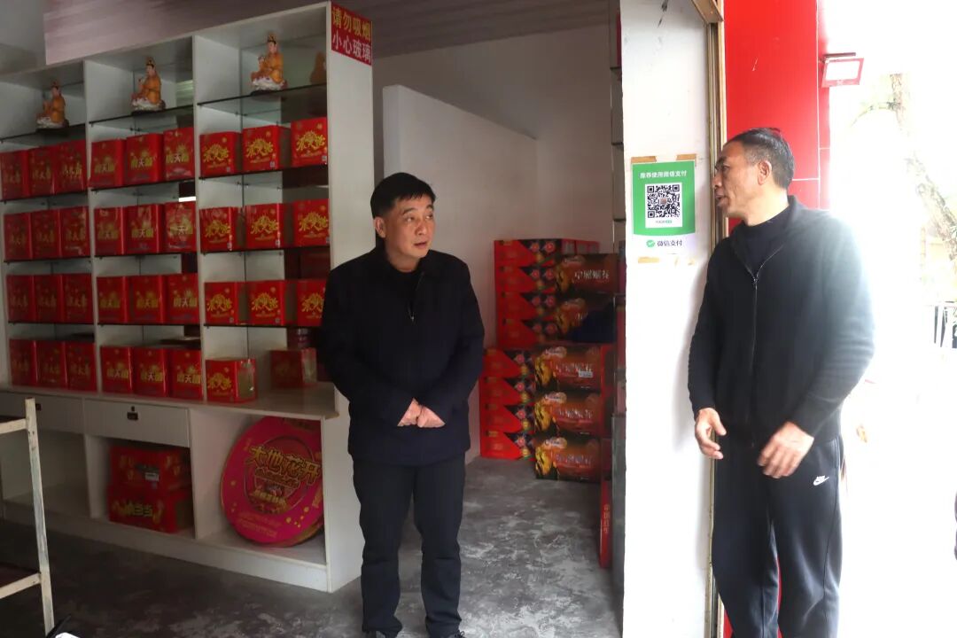 罗洪祥先后来到位于和平街道枫香社区的浏阳艳阳天模压烟花沿河品牌直营店和位于黑水镇杨寨社区的沿河兴农贸易有限责任公司,实地查看烟花爆竹存放、管理、售卖等情况,与企业负责人深入交流,详细了解禁燃禁放宣传、非法销售查处、存量回收处置等工作落实情况,现场协调解决工作中的难点堵点问题。