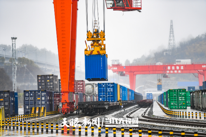 一列中欧班列在贵阳国际陆港都拉营站装载集装箱。邓刚 摄