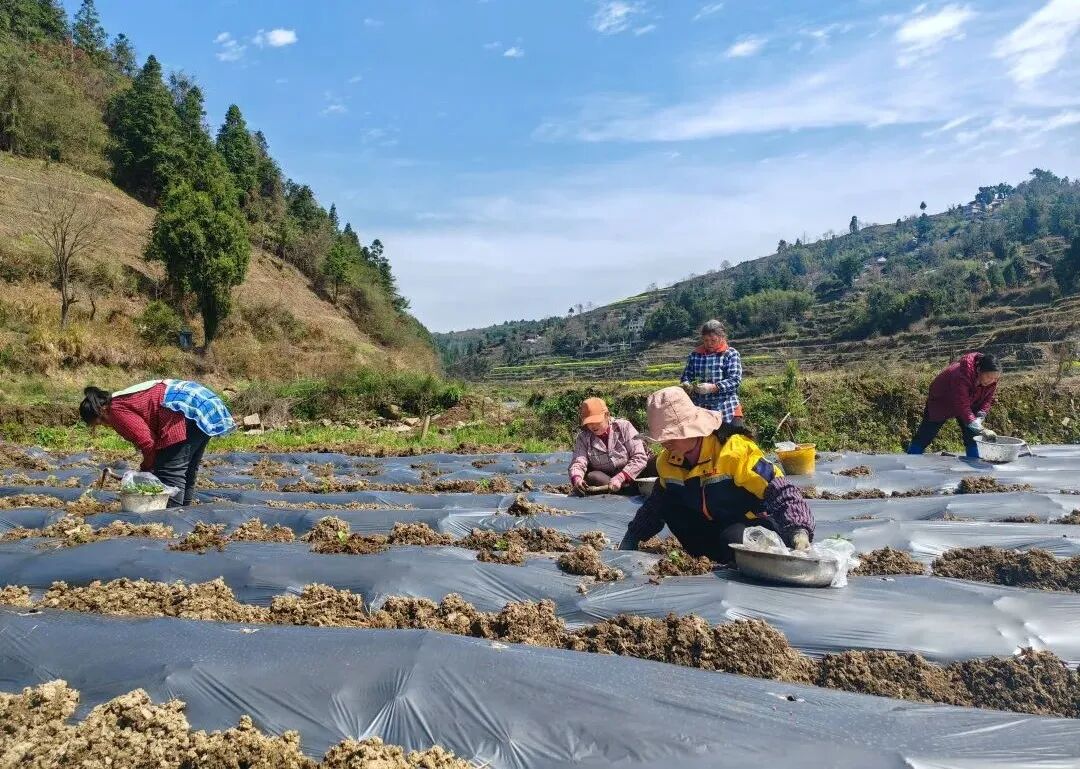 图为2025年3月19日,在石阡县聚凤乡宝龙村的辣椒种植基地里十多名椒农正在移栽菜辣椒苗。黎祖艳 摄