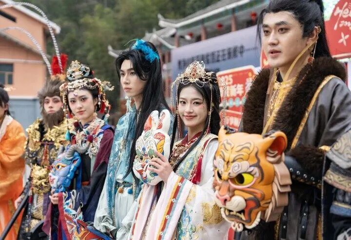 图为2025年2月12日,农历蛇年元宵佳节,一场别开生面的文化活动“梵净山十二生肖奇遇记”之“金蛇迎春”在世界自然遗产地梵净山进行着。叶顺强 摄
