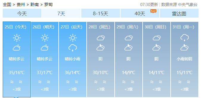 上周末以来,贵州各地都迎来一波升温,罗甸最高温更是能冲到37℃,堪比夏天。