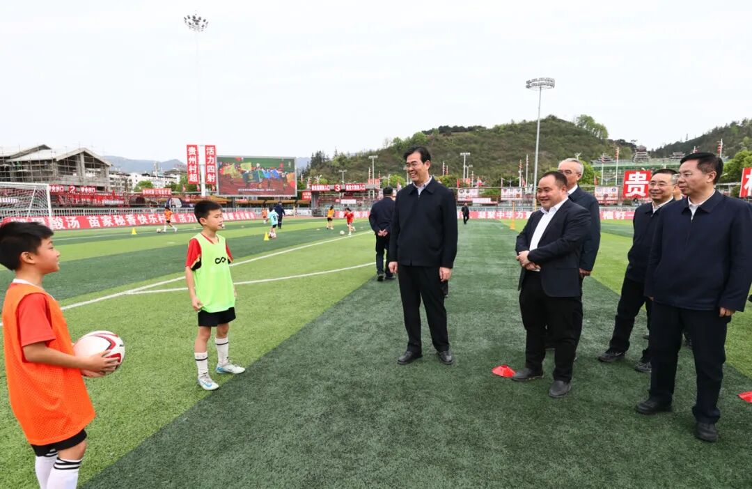 图为李炳军在榕江县村超球场,详细了解青少年足球培训等情况。三宝侗寨是全国侗族人口居住最密集的村寨之一,李炳军实地考察,要求加强系统性保护,高水平做好总体规划,聚焦核心区域,进一步加快推进风貌管控治理、丰富提升业态,让民族村寨焕发新的光彩。李炳军前往村超球场,详细了解青少年足球培训、赛事安全保障等情况,要求打好“村超”牌,确保可持续发展;加强城乡环境综合整治,提升接待服务质量,更好发挥文旅产业对“桥头堡”建设的带动作用。