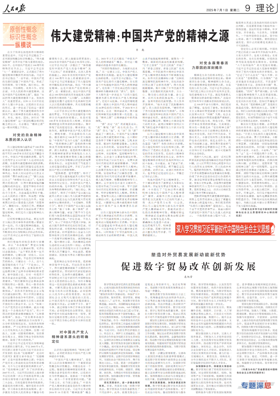 在关于传承弘扬党的伟大精神的重要论述中,习近平总书记提出了一系列原创性概念标识性概念。“伟大建党精神”在其中处于极为重要的地位。2021年,在中国共产党成立100周年的特殊历史节点上,习近平总书记在“七一”重要讲话中,正式提出了伟大建党精神并概括其深刻内涵。习近平总书记指出“一百年前,中国共产党的先驱们创建了中国共产党,形成了坚持真理、坚守理想,践行初心、担当使命,不怕牺牲、英勇斗争,对党忠诚、不负人民的伟大建党精神,这是中国共产党的精神之源”,提出“永远把伟大建党精神继承下去、发扬光大”的重要要求。同年11月召开的党的十九届六中全会,以党的历史决议的形式,进一步论述了党的这一重要新认识,确立了伟大建党精神作为中国共产党人精神谱系的源头地位。源者,本也,始也,因也。深化对“伟大建党精神”这一原创性概念标识性概念的认识,有必要在“精神之源”这一根本问题上下功夫。