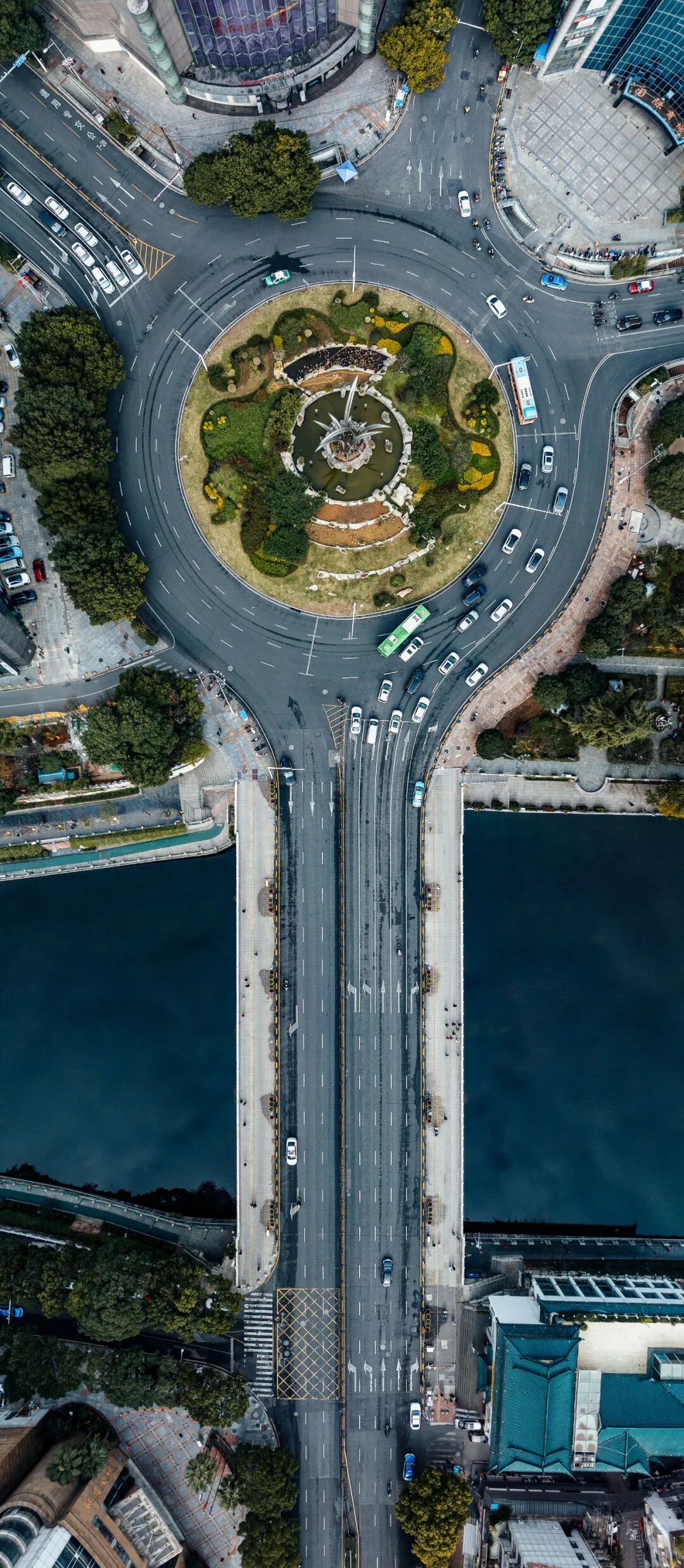 南明桥航拍,过了桥北“大转盘”就是贵阳老城区。