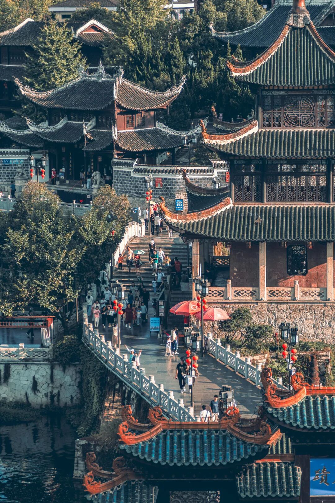 伫立在镇远㵲阳河畔的祝圣桥,就是这样一座以桥聚气、以桥通运的信念所在。此桥始建于明万历三十七年(1609年),几度重建,直至清雍正元年(1723年)才最终建成(《贵州桥梁志》),落成后,却成为了湘黔驿道上无可替代的文明枢纽—— 东南亚使节北上赴京的马蹄、马帮驮运物产的铃铛、驿卒传递公文的脚步,皆在此交汇。桥上对联“扫净五溪烟,汉使浮槎撑斗出;辟开重驿路,缅人骑象过桥来”,正是生动写照。祝圣桥是青龙洞建筑群的重要一部分,这一建筑群的“三教共生”,同样书写了文明相融的典范。