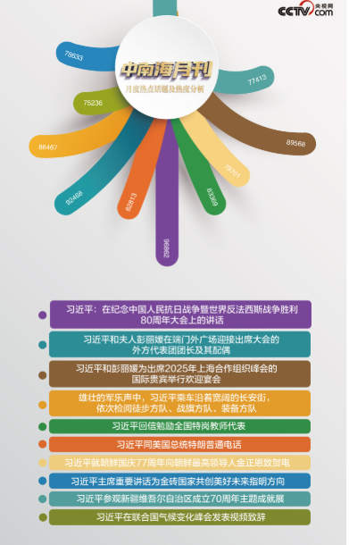 “珍爱和平,开创未来”奏响了9月的主题乐章,历史的厚重与未来的壮阔在此交汇。央视网《中南海月刊》依托智能大数据,带您一同回顾习近平总书记2025年9月的内政外交足迹,从历史与现实中汲取前行力量。