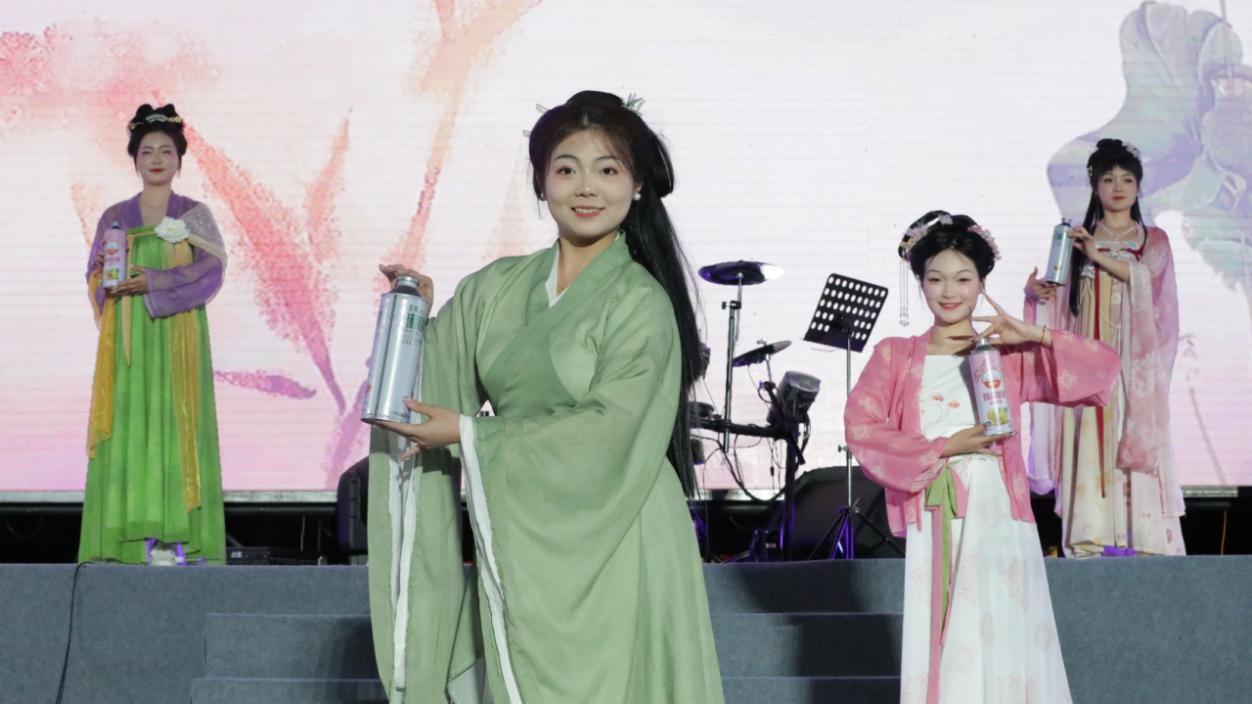 表演者们正在展示不同口味的抹茶精酿啤酒。江口县委宣传部供图