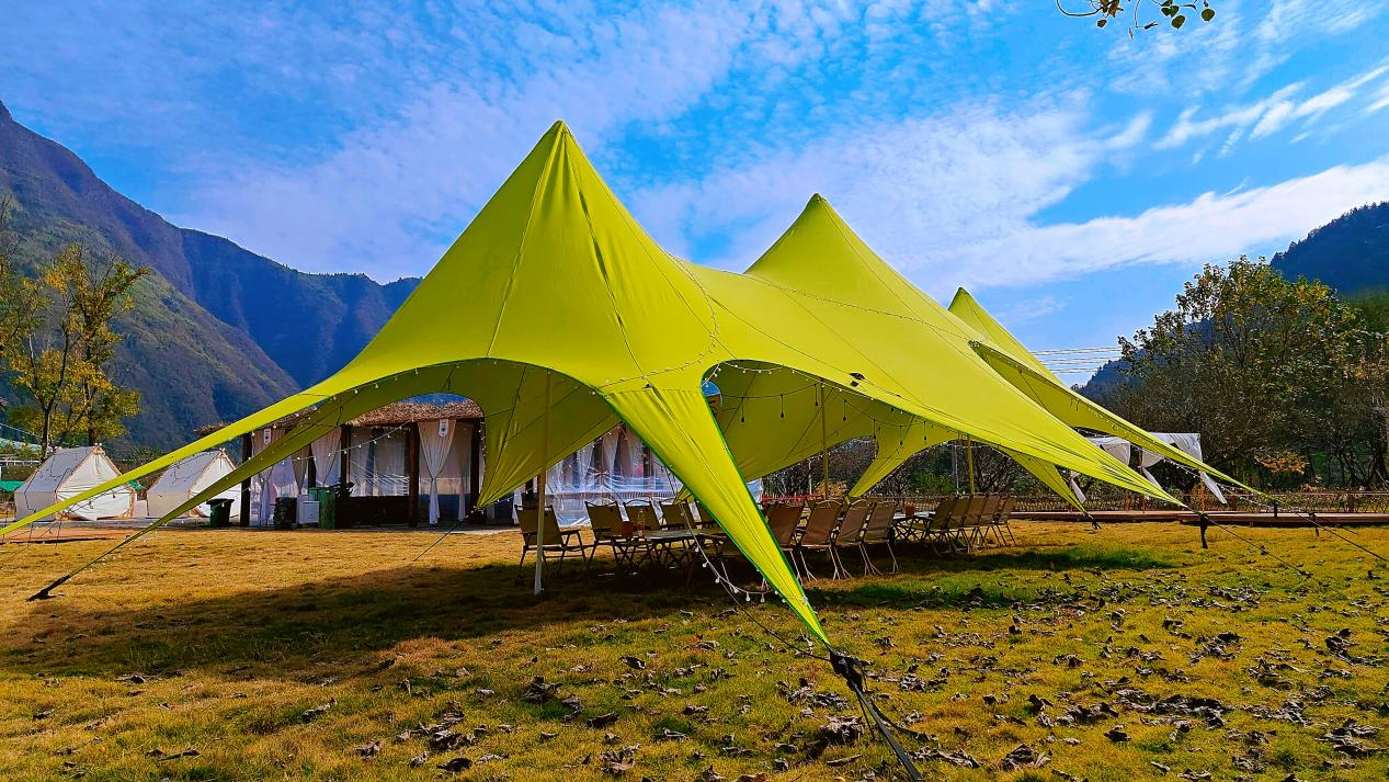 在这里,不止能枕着星河入眠,“露营+”模式还构建起多元游玩场景:徒步爱好者可深入梵净山,以脚步丈量自然之美;骑行玩家可沿太平河欣赏山水画卷。清晨,在草坪上伴着鸟鸣体验一场户外瑜伽;午后,和孩子一同辨识珍稀动植物。“我们还持续打造帐篷节、星空音乐节等IP活动,将生态野趣与艺术创意融合。”黄光尧说。