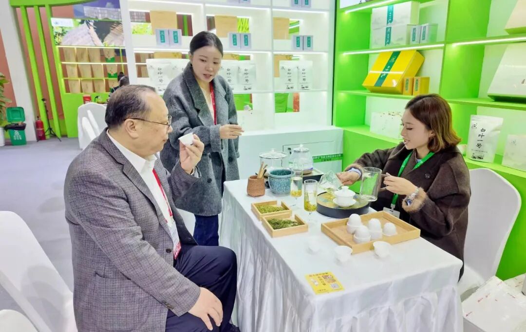 展示展销区成为铜仁茶品的“立体名片”。精心打造的144平方米的梵净山茶特色展馆设计融入铜仁地域文化元素,LED大屏滚动播放铜仁茶产业宣传片,营造出兼具生态美感与文化氛围的展示空间。