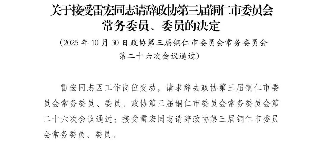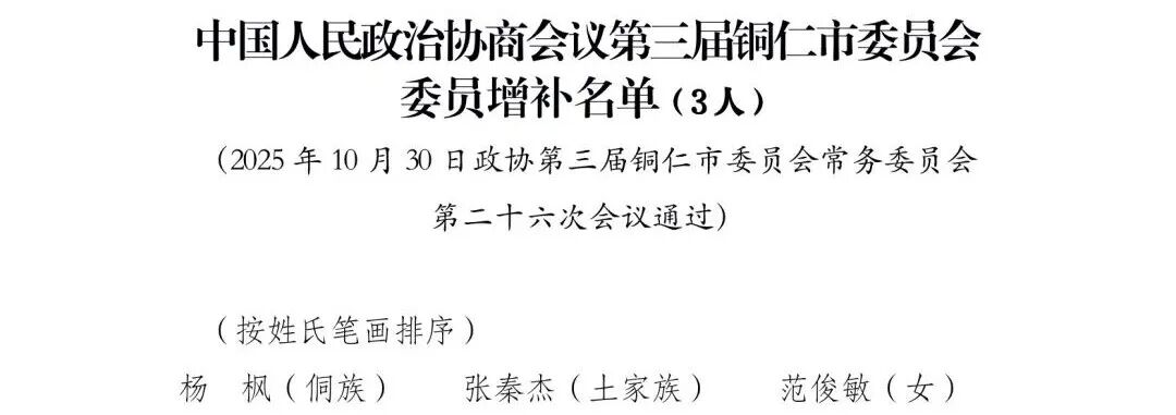 市政协三届常委会第二十六次会议审议通过有关人事事项
