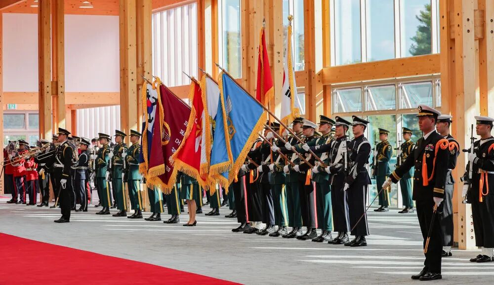 当地时间11月1日下午,国家主席习近平出席韩国总统李在明举行的欢迎仪式。