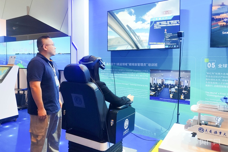 11月14日,2025大连航商大会现场,参会者体验专业级VR船舶模拟驾驶(央广网记者 刘培俊 摄)