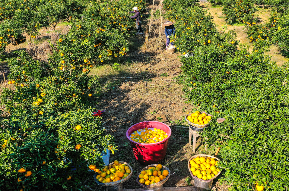 据了解,新景镇边山农场社区从1976年发展柑橘产业至今,拥有爱媛、春见、大雅柑、塔罗科血橙等改良品种柑橘1500余亩,年产量超30万斤;椪柑、温州、脐橙等传统柑橘品种1000余亩,年产量约200万斤。农场独特的海拔气候、良好的生态环境和优质肥沃的土壤孕育了新景柑橘,同时助力果农增收致富。