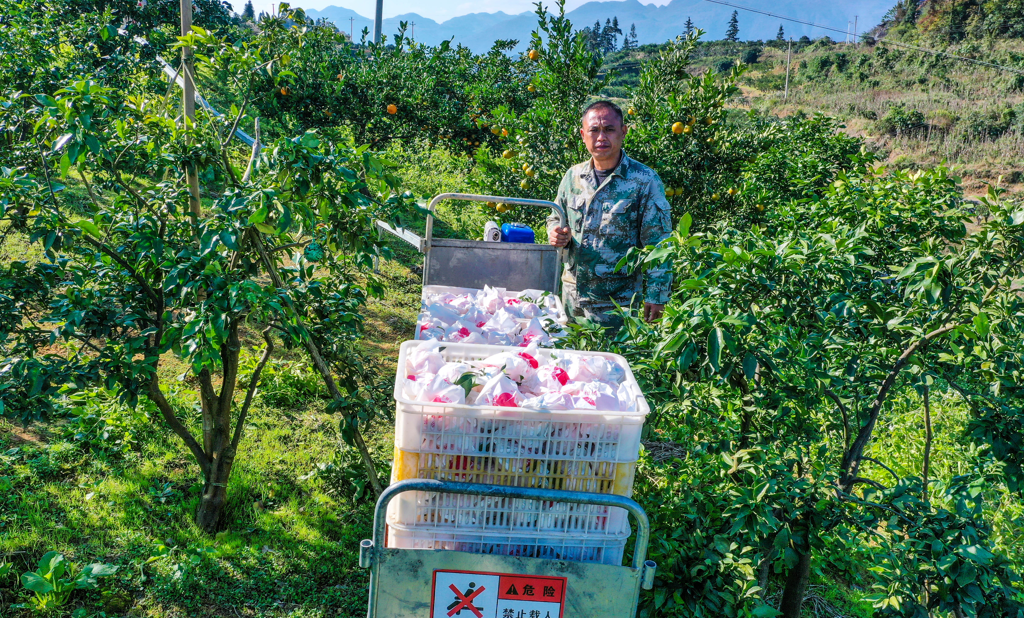 这种穿梭于果园的“小火车”实现了以机械替代人力,一举解决了“有机肥上山难,柑橘下山难”的两大痛点。“我的10亩园子坡度大、离公路远,以前背一篼柑橘到路边,爬坡就得一二十分钟,累得不行。现在这车一趟能拉400公斤,顶得上8个壮劳力,我们可轻松多了。”肖飞说。