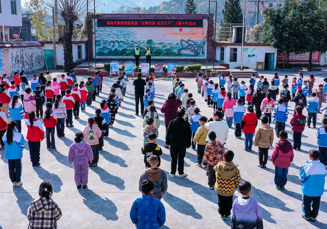 12月1日,沿河自治县交警大队联合铜仁市高速交警沿河大队,走进中界镇初级中学、中界镇中心完小开展“文明交通·礼行天下”主题宣传活动。