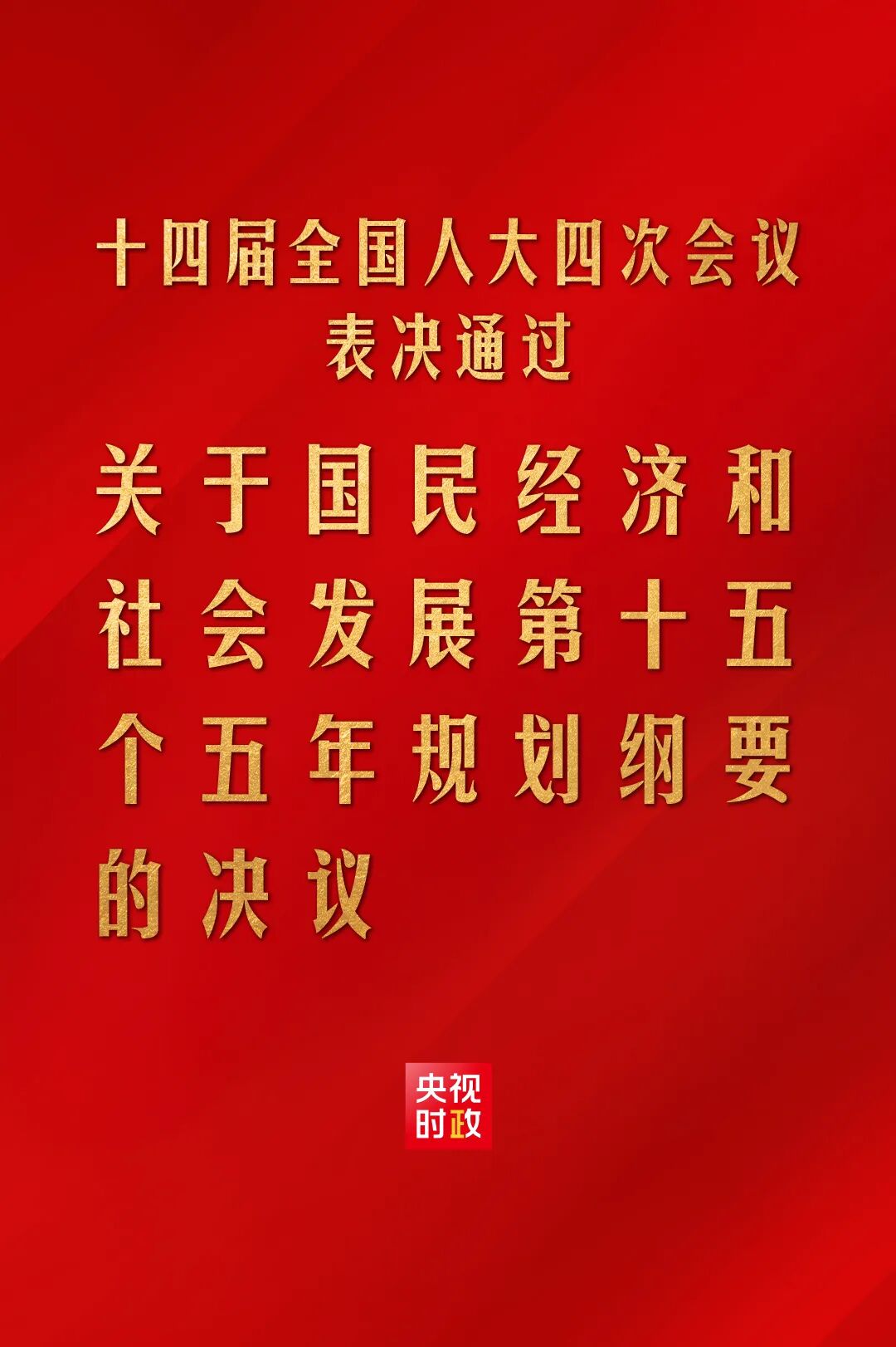 十四届全国人大四次会议表决通过关于国民经济和社会发展第十五个五年规划纲要的决议。